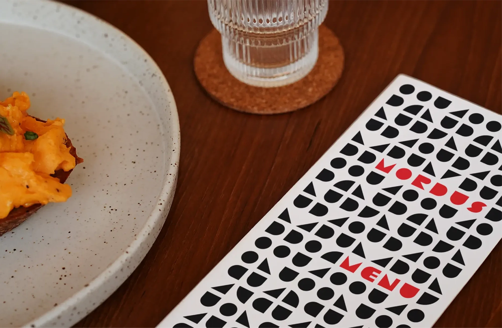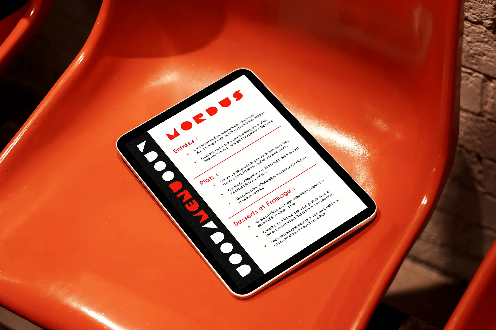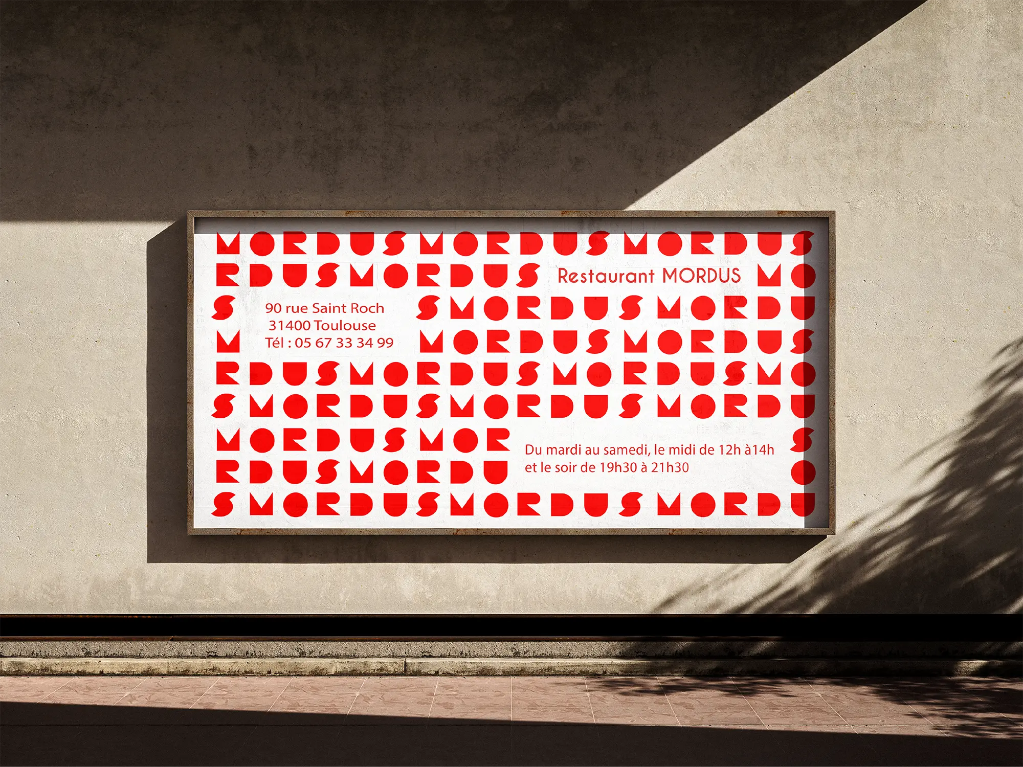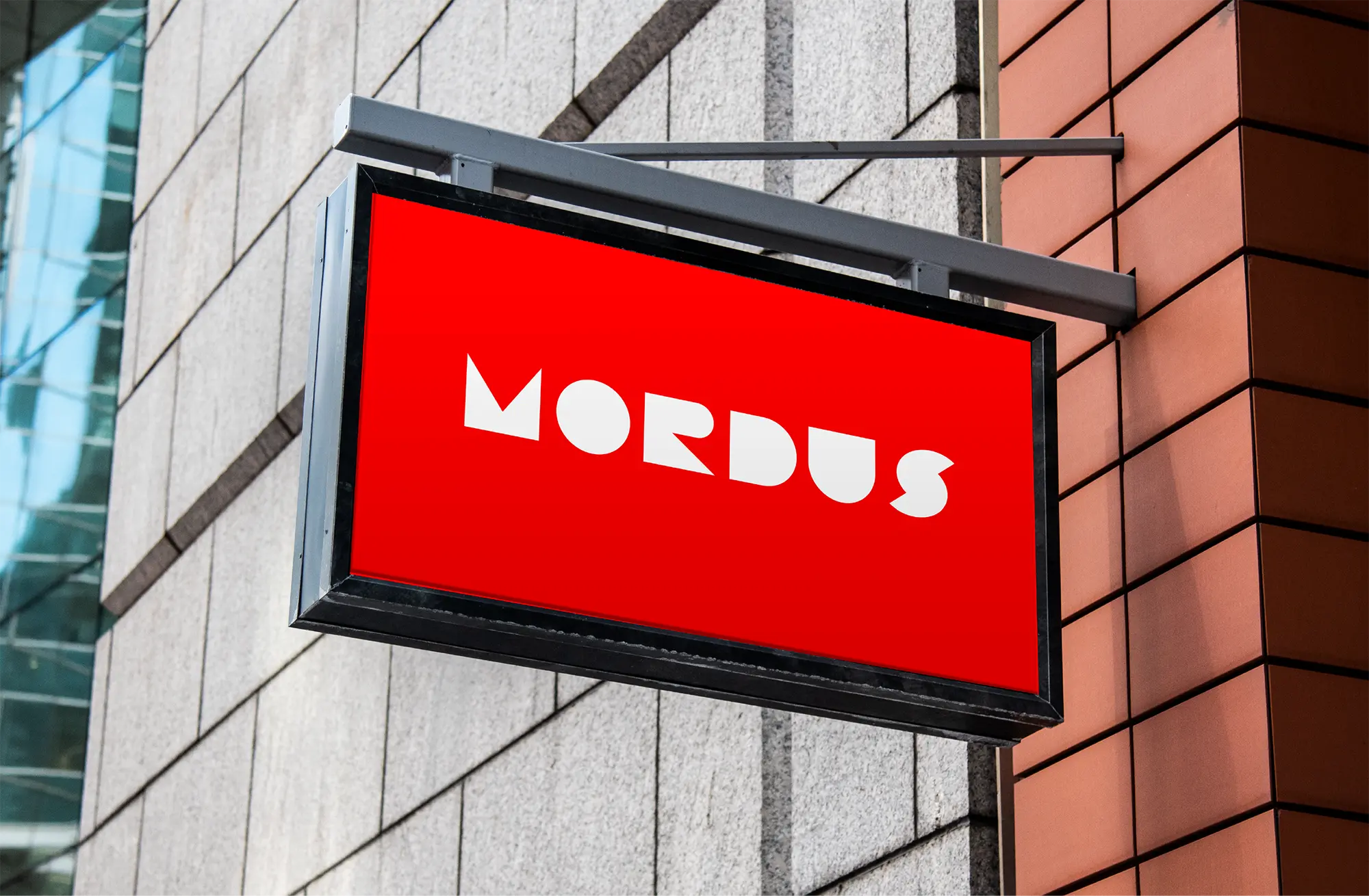 Created the visual identity for Mordus restaurant, focusing on simplicity and tradition through geometric forms and a custom typographic logo. The branding combines red and black to reflect both the intensity of flavors and a refined dining experience.